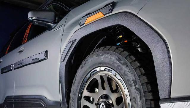 可以看到深资管,该车还升级了定制化的放脱圈轮毂,并且搭配了来自东洋的R/T轮胎,从而提升非铺装路面的抓地力。