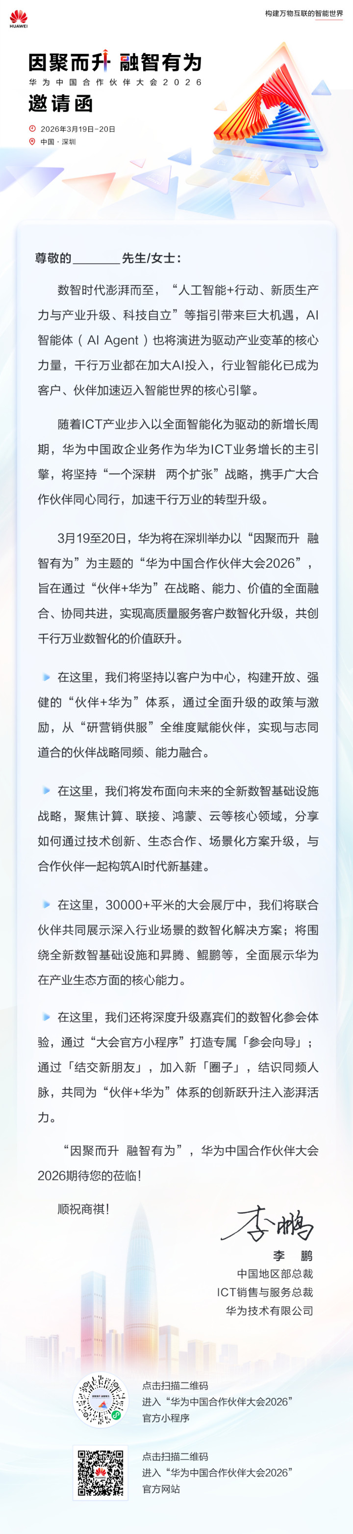 IT之家2月13日消息,以“因聚而升,融智有为”为主题的华为中国合作伙伴大会2026官宣将于2026年3月19日-20日在深圳举行。