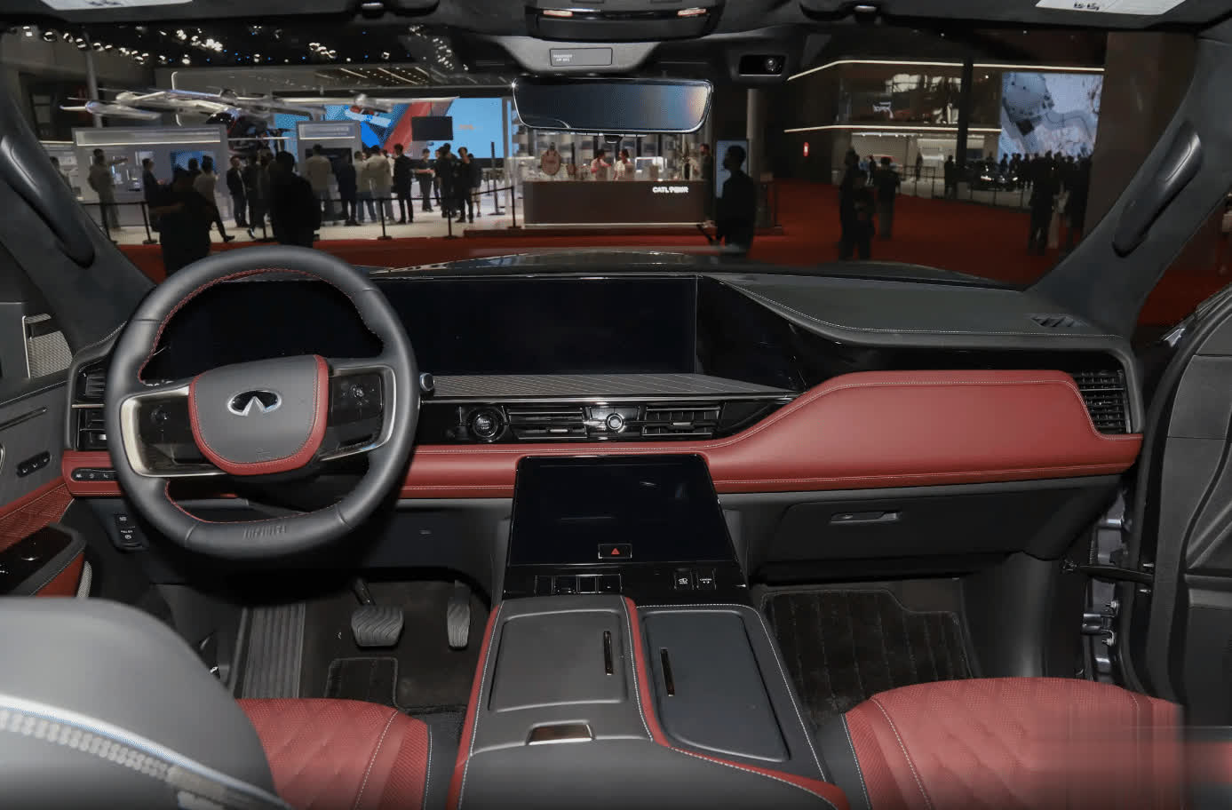不过毕竟还是传统油车的架构,车头前脸以及尾部都是比较传统的风格,保留了英菲尼迪品牌辨识度很高的大尺寸扩散造型进气中网,车头两侧也在跟风采用比较流行的矩阵线条式灯光。而尾部有了贯穿灯光加持之后,整体的辨识度有所提升。